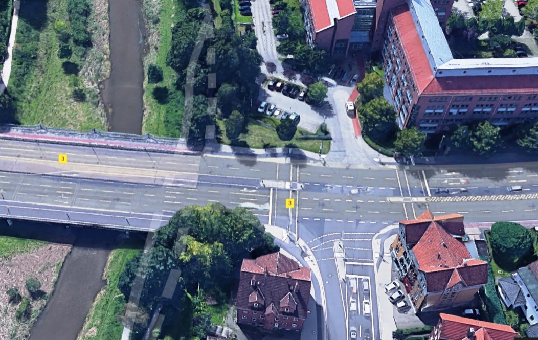 Unter der Otto-Frey-Brücke in Göttingen, sozusagen unter der Polizei, ganz nahe beim Wasser der Leine, wohnt ein Ungeheuer ### Nachtrag 1.6.2018: das Ungeheuer 'hat sich hinter einen Farbvorhang' zurückgezogen, man kann wieder un-erschrocken vorbeifahren ### ;-)
